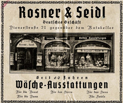 Werbung von „Rosner & Seidl“ mit dem Zusatz „Deutsches Geschäft“, nach 1933