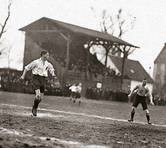 Münchens erster Fußballplatz mit überdachter Sitzplatztribüne lag an der Leopoldstraße, etwa auf Höhe Hausnummer 160 am Parzivalplatz. Seit 2022 erinnert ein kleines Denkmal der „Kurt Landauer Stiftung“ dort an den Platz mitsamt kleiner Tribüne, die liebevoll „Schuhschachtel“ genannt wurde. Hier spielten die Bayern von 1907 bis 1922, die damals modernste Sportanlage der Stadt gehörte dem MSC, mit dem man 1906 fusioniert hatte. Das erste Spiel war gleich ein 8:0 gegen den Lokalrivalen FC Wacker München. Die Tribüne erwies sich mit ihren 200 Sitzplätzen jedoch schnell als zu klein. Bevor der FC Bayern dann 1925 an der Grünwalder Straße eine dauerhafte Heimat fand, nutzte er in den frühen 1920er Jahren den MTV-Platz an der Marbachstraße in Sendling und auch den Teutonia-Platz am Oberwiesenfeld: Dort, wo später das Olympiagelände entstehen sollte, gab es 12.000 Zuschauerplätze.
