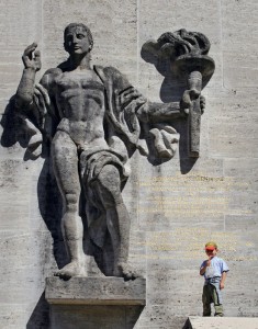 die Welt blickte nach Deutschland: Der Zuschlag für die XI. Olympischen Sommerspiele 1936 war nach Berlin gegangen, verbunden mit der Austragung der Winterspiele im selben Jahr in einem deutschen Wintersportort. Dieser Ort freilich wurde mit der zwangsweisen Vereinigung der beiden Gemeinden Garmisch und Partenkirchen am Fuß der Zugspitze erst geschaffen. Kernstück der IV. Winterspiele sollte das halbkreisförmige Skistadion werden, für das Arthur Holzheimer den Entwurf lieferte. Es stellte mit seiner Größe alles Vergleichbare in den Schatten und der Besucherrekord von 130.000 Besuchern ist bis heute ungebrochen für eine Wettkampfveranstaltung bei Olympischen Winterspiele.