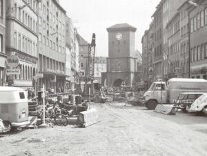 Telefonzellen gehören zu den Dingen, die auch in München längst aus dem Stadtbild verschwunden sind. Verschwunden sind auch die bezaubernden buntgestreiften Sonnenschirme ganz ohne Brauerei-Werbung, die es früher in allen Biergärten und Straßencafés gab. Und verschwunden ist sogar der ganze Flughafen München Riem, wo man noch bis weit in die 1960er Jahre direkt am Rand des Rollfelds Kaffee trinken konnte. Dazu gab es Mokkatorte, Biskuitroulade und Fürst-Pückler-Eis. Vielleicht sogar Toast Hawaii und Spargelröllchen? Jedenfalls bestaunte man die schöne neue Welt der Technik, denn bereits wenige Jahre nach der großen Katastrophe des Zweiten Weltkriegs boomte die westdeutsche Wirtschaft wieder. Das Leben war endlich wieder schön und bunt.