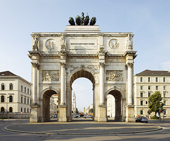 Die Feldherrnhalle markiert den stadtseitigen Anfangspunkt der bayerisch-italienischen „Via Triumphalis“. Sie wurde 1835 bei Friedrich von Gärtner in Auftrag gegeben und 1844 eingeweiht. Vorbild für die dreibogige offene Halle war natürlich die Loggia dei Lanzi in Florenz, der sie beinahe wie ein Ei dem anderen gleicht. Die offene Arkadenhalle an der Florentiner Piazza della Signoria wurde zwischen 1376 und 1382 errichtet und diente ursprünglich für Kundgebungen der Republik Florenz. Cosimo de Medici brachte hier im 16. Jahrhundert seine deutsche Söldnertruppe unter. Diese Landsknechte wurden „Lanzichenecchi“ genannt, die Florentiner vereinfachten dann den Zungenbrecher zu „Lanzi“.