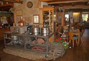 „Happy birthday to you“, singt die ganze Runde und hebt das Glas zum „Prost auf den Erich“. Das Geburtstagskind kann gerade den ersten Schluck nehmen, dann ruft Braumeister Dieter Graßl zur Arbeit: Erich soll das Malz in den Sudkessel schütten. Es riecht nach Malzbonbon und der Brauhelfer staunt über die Menge: für 100 Liter Bier braucht man 18 Kilogramm Malz, also für 50 Liter immerhin noch neun Kilo, erklärt der Braumeister. Zum 60er braut Erich sein eigenes Geburtstagsbier – ein Geschenk der Freundesrunde am Tisch. Möglich macht es die kleinste mobile Brauerei der Welt, wie ein Eintrag ins Guinness-Buch der Rekorde 1996 bestätigt. Die Anlage mit dem blitzenden Kupferkessel ist etwas größer als ein Wirtshaustisch und steht im Brauereigasthof Schäffler in Missen-Wilhams im Oberallgäu.