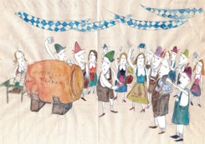 „Während Amerikaner, Australier und Italiener weite Wege auf sich nehmen, um in München dem Gott des Bieres zu huldigen, sind unsere südwestlichen Nachbarn eher zurückhaltend. Cyril Mariaux und Vincent Minner haben trotzdem einen Besuch gewagt. In kunstvollen Aquarellen beschreiben sie die Wiesn aus französischer Sicht. Und die ist süffisant […]“.